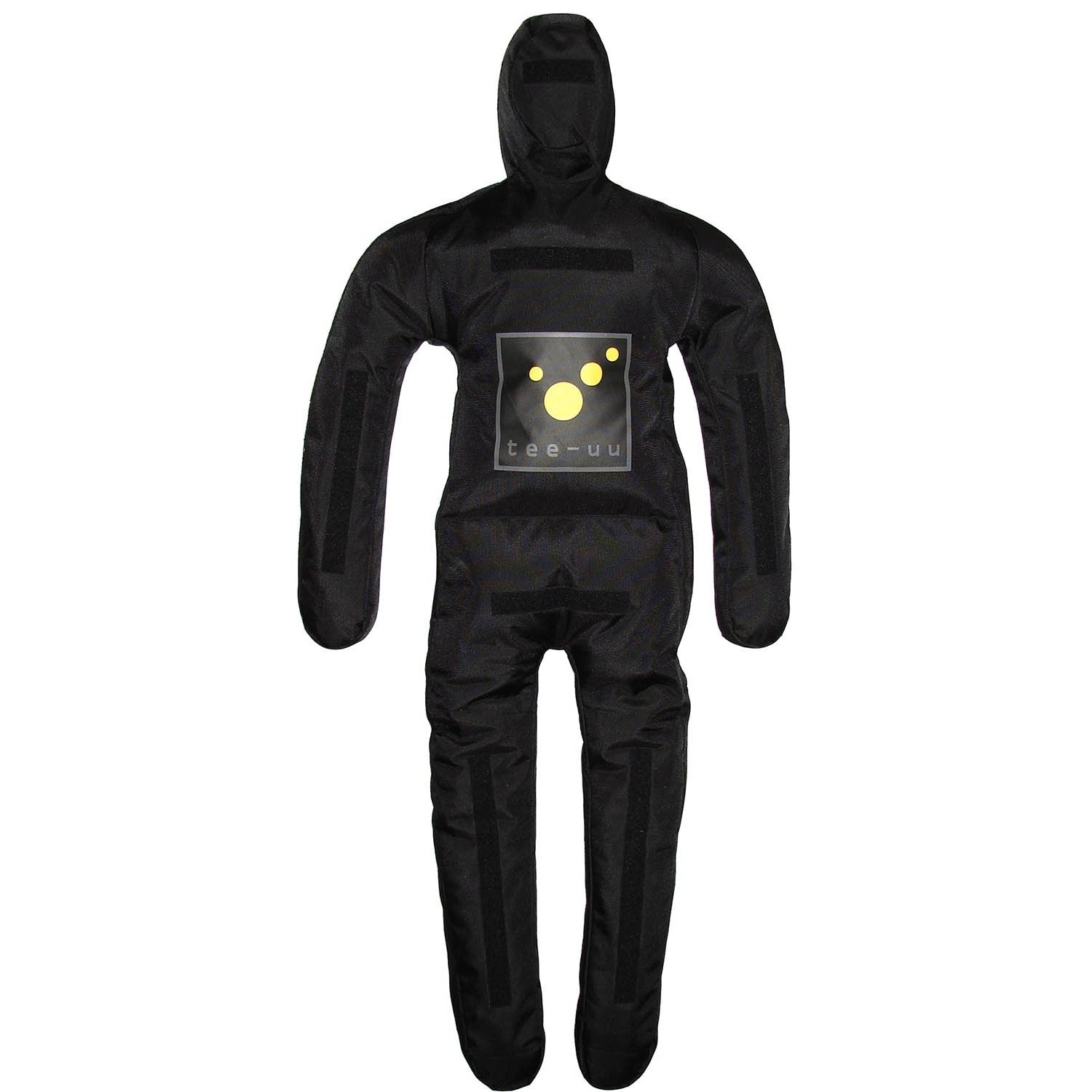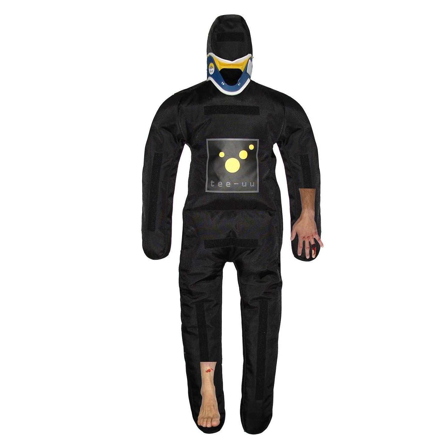 On head, torso and extremities several hook-and-loop areas can be found at front and rear of training dummy for mounting of injury patterns.