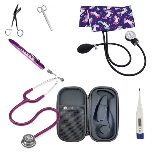 Advanced Nurses Kit Unicorn - Littmann Classic III Stethoscope Purple 5831, Sphyg, Thermometer, Scissors and More!